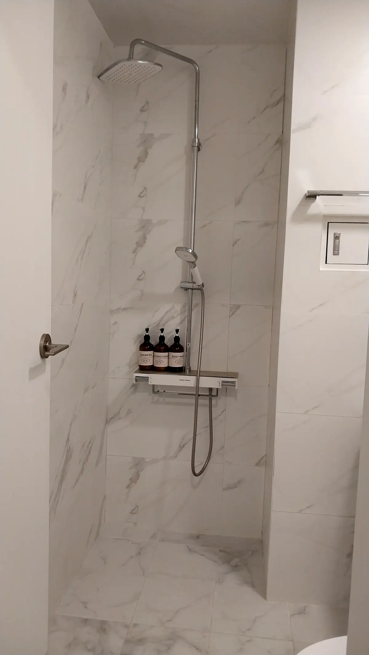 현관입구에 바로 보이는 샤워장과 화장실은 전체적으로 아주 양호하며 깔끔한 편이다. 변기를 제외하고 모두 아메리칸 스탠다드 고급진 욕실브랜드를 사용했다.