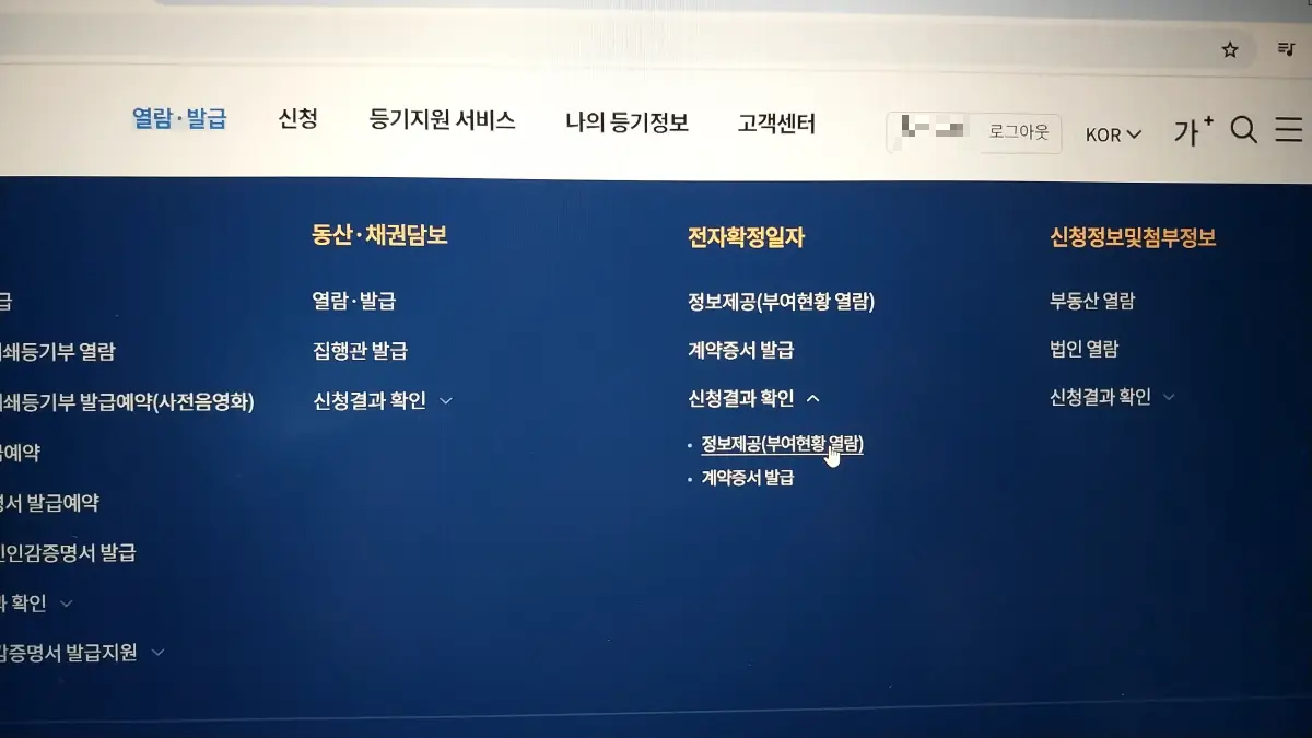로그인을 이상 없이 했다면, 열람 발급에서 전자확정일자 정보제공(부여현황 열람)을 클릭한다.