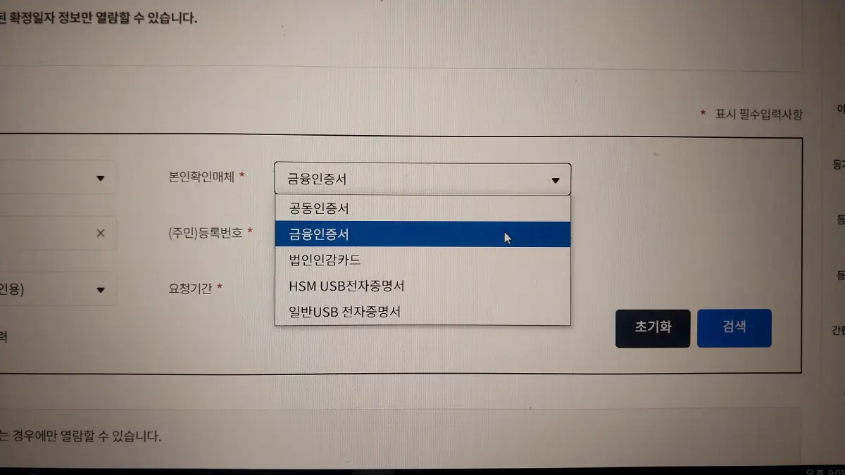 이어서 본인확인매체에서 공동인증서 금융인증서 전자증명서 같은 인증서중 편리한 방식을 선택한다.