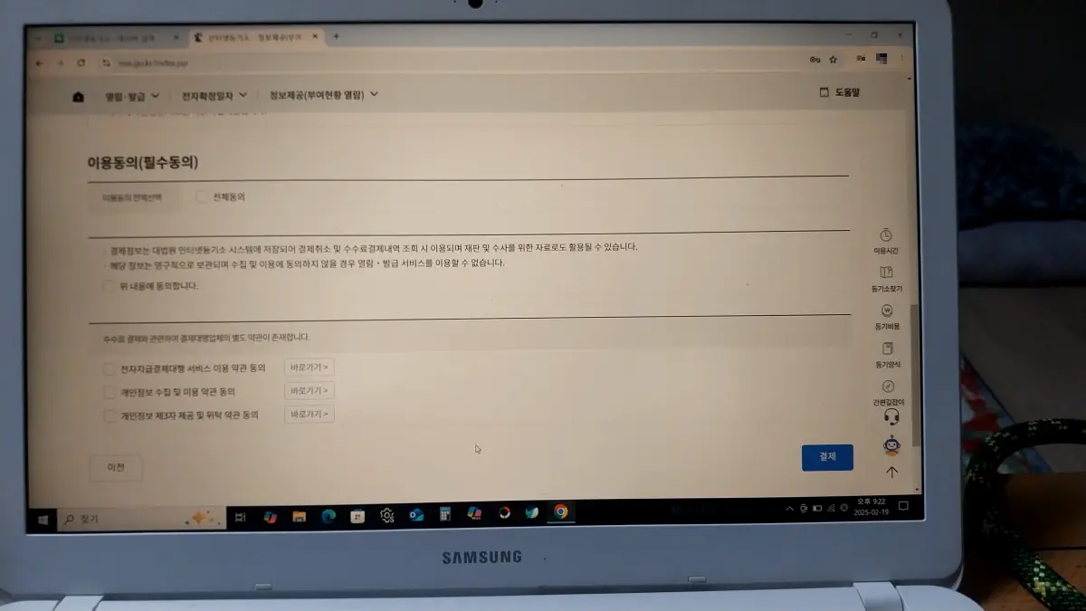 결재하기 위한 필수 정보에 대해 제공동의서를 체크박스에서 확인하고, 결재를 요청한다.