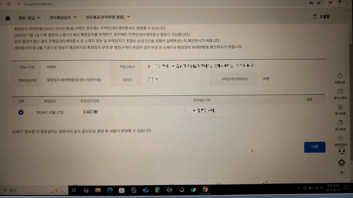 정보제공유형에서 확정일자 부여현황(임대인/임차인)을 선택한다.