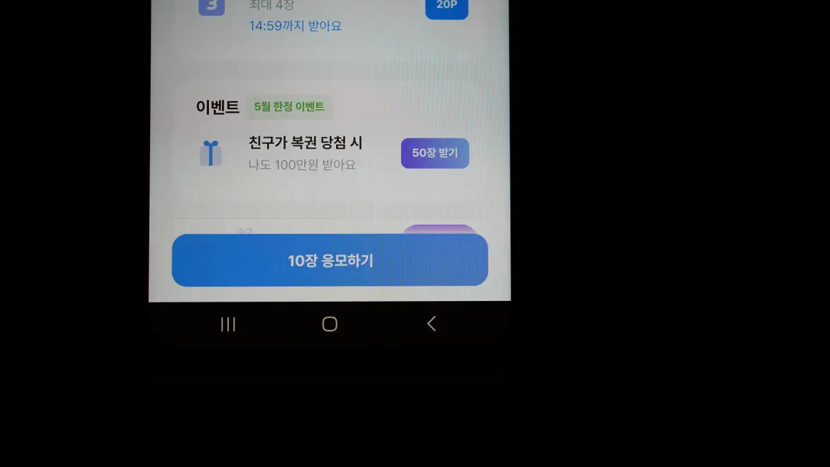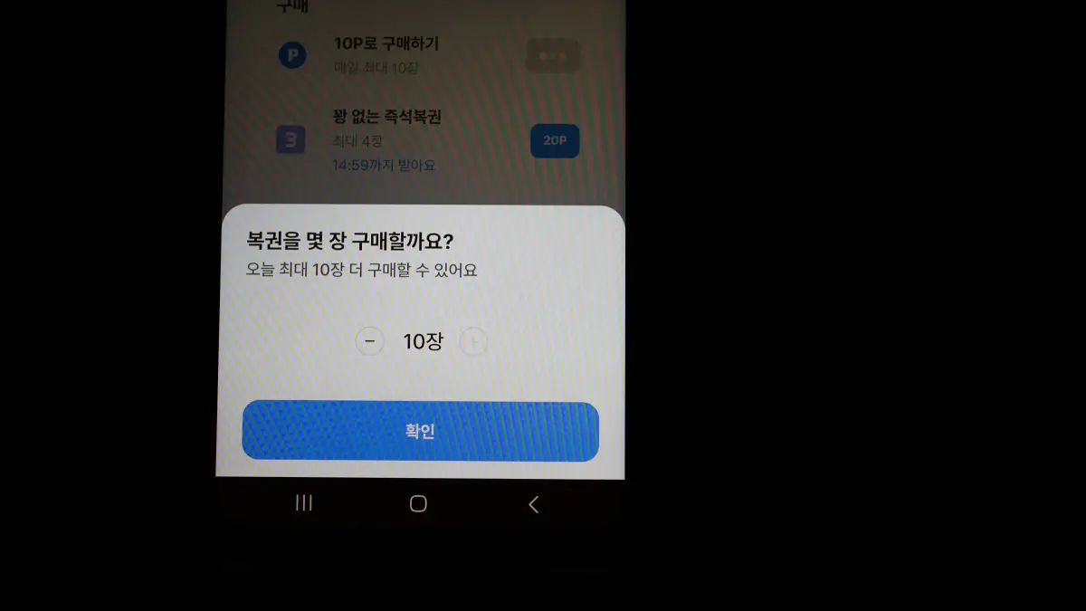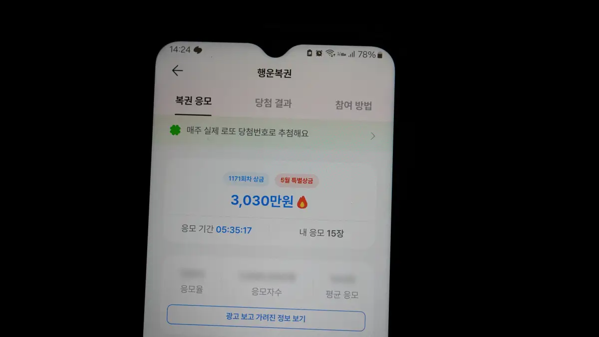 앱에 들어가면 미션에서 행운복권 응모하기를 선택한다. 이번 주 당첨금은 3030만 원이다.