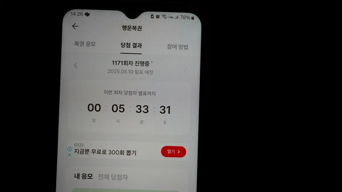구매한 10장의 복권들은 이번 회 토요일에 당첨자가 발표된다. 당첨번호는 실제 로또번호와 일치해야 하며, 1등의 상금은 3030만 원이다. 1등이 안되면 포인트로 보상받거나 꽝이 나올 수도 있다. 무료이니 안 할 이유는 없을 거 같다는 생각을 한다.