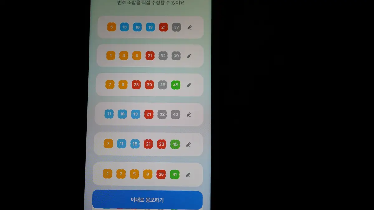 10장의 로또복권이 자동으로 생성된다. 이대로 응모도 가능하고, 내가 직접 수정해서 수동으로 번호를 찍어서 응모도 가능하다. 내가 여태껏 해본 결과 수동보단 자동으로 당첨될 확률이 더 높았다.
