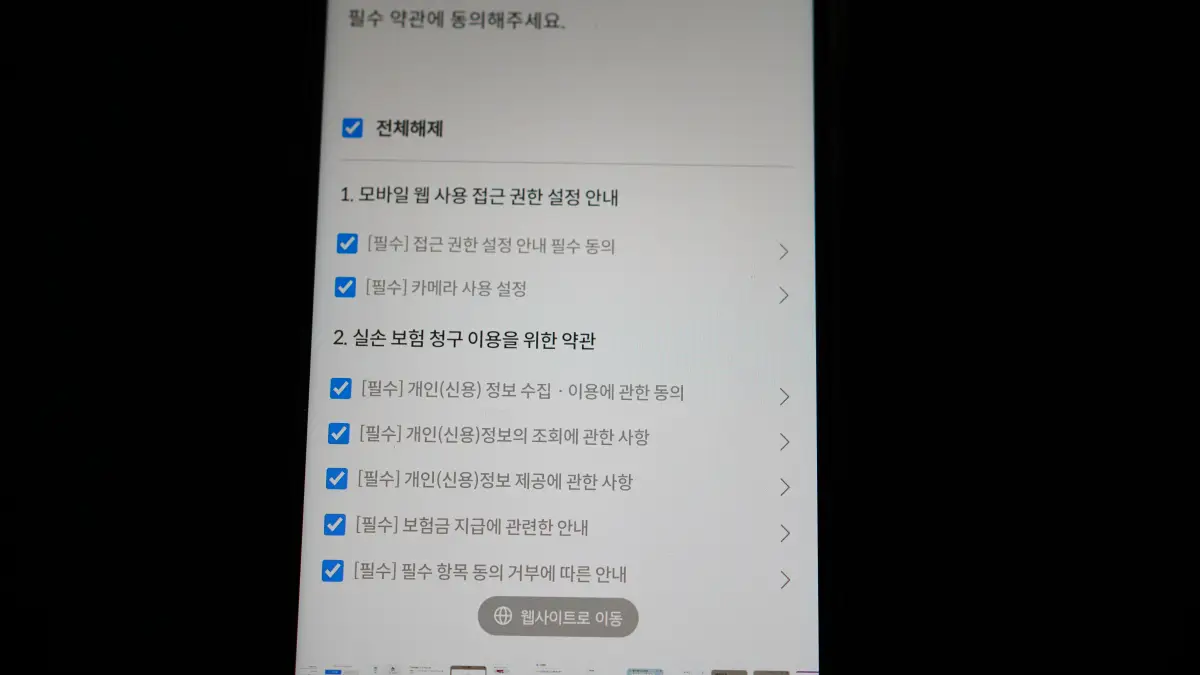 4. 실손 보험에 대한 필수 약관을 모두 선택하고 동의해야 한다.