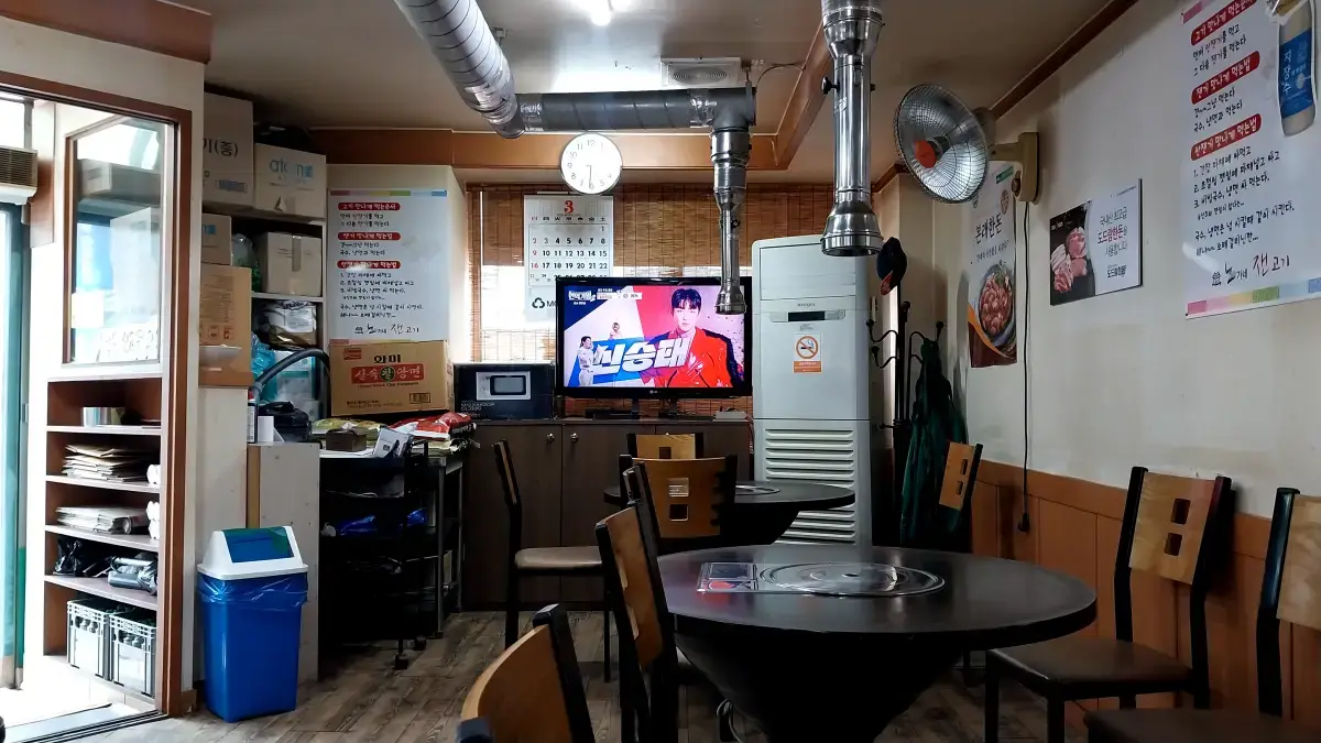 테이블은 모두 입식으로 원탁형 테이블로 세팅되어 있다. 고깃집이다 보니 전부 원형테이블로 되어 있는 거 같다.