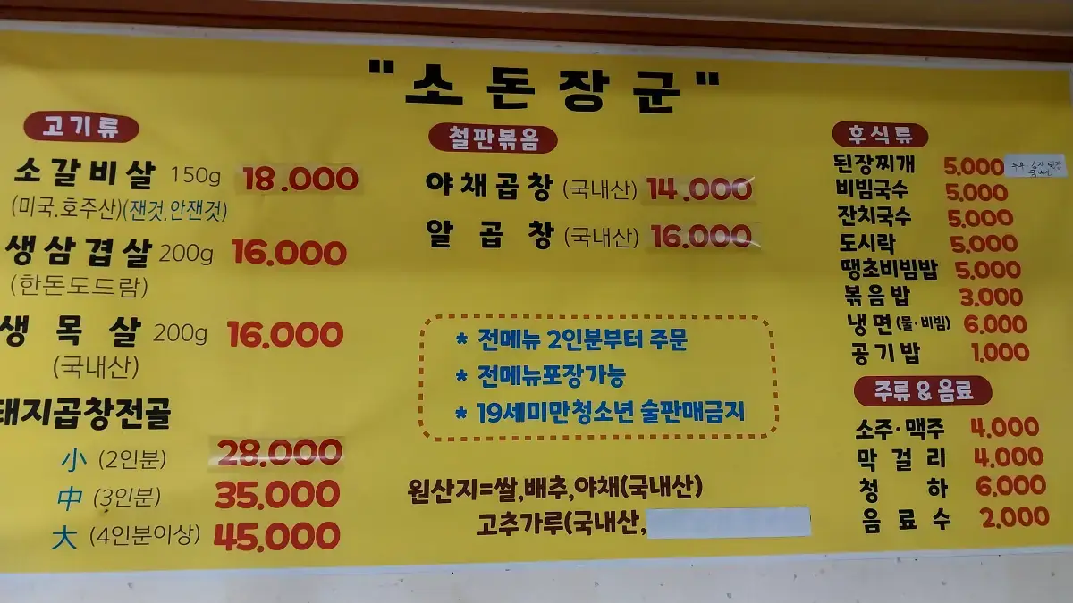 메뉴판에는 소고기부터 삼겹살 곱창 후식 주류들 메뉴판이 현수막으로 걸려있었다.