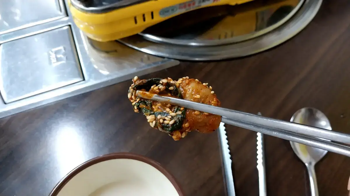 곱창을 계속 먹으면 양념된 곱창이라도 느끼할 수 있는데, 이때 양파장아찌와 같이 먹으면 느끼함이 해소되었다.