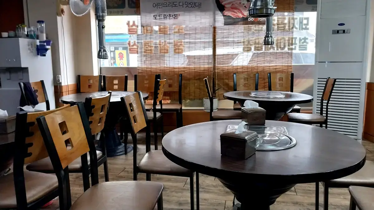 테이블은 모두 입식으로 원탁형 테이블로 세팅되어 있다. 고깃집이다 보니 전부 원형테이블로 되어 있는 거 같다.