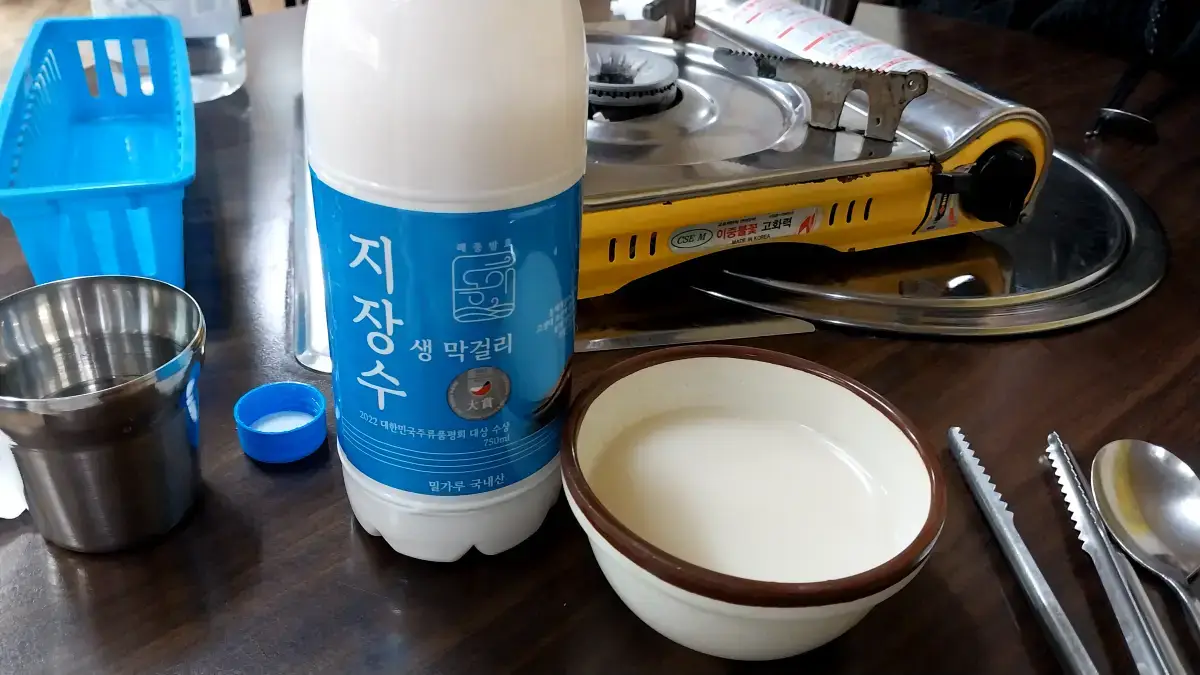 일단 음식이 나오기 전까지 와이프와 이런저런 얘기하면서 혼자 막걸리를 한잔했다. 지평에서 새로 나온 막걸리인 지장수막걸리다.