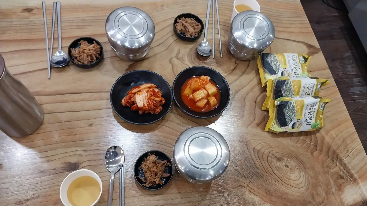그래서 기타 반찬들은 없어도 김치맛을 중요하게 생각하는 것이다. 여기는 김치가 두종류가 나온다. 깍두기와 배추김치다. 추가로 맛김과 장조림이 나온다.