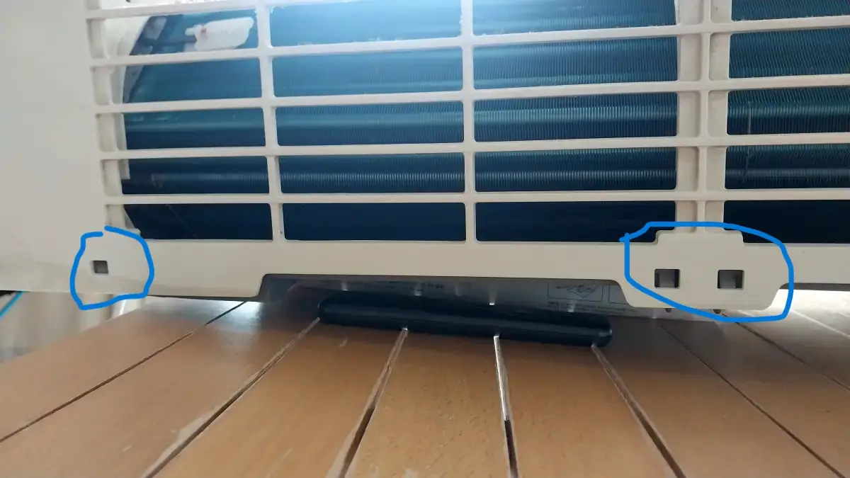 4곳 볼트를 모두 풀어줬으면, 케이스 상단 부분에 고정된 곳을 분해하면 에어컨 외부 케이스는 분해된다.
