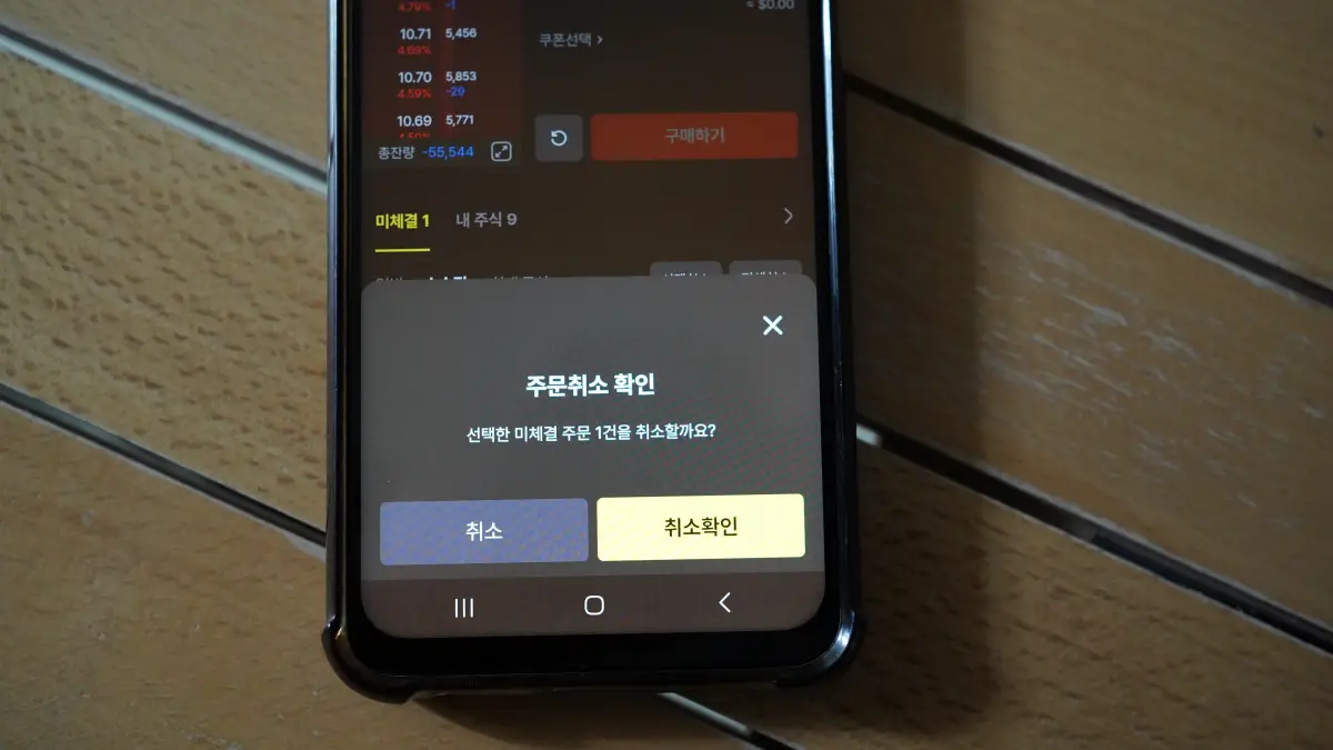 참고: 소수점 주식에서 매수한 주식은 소수점 거래소 밖에 취소가 안된다.