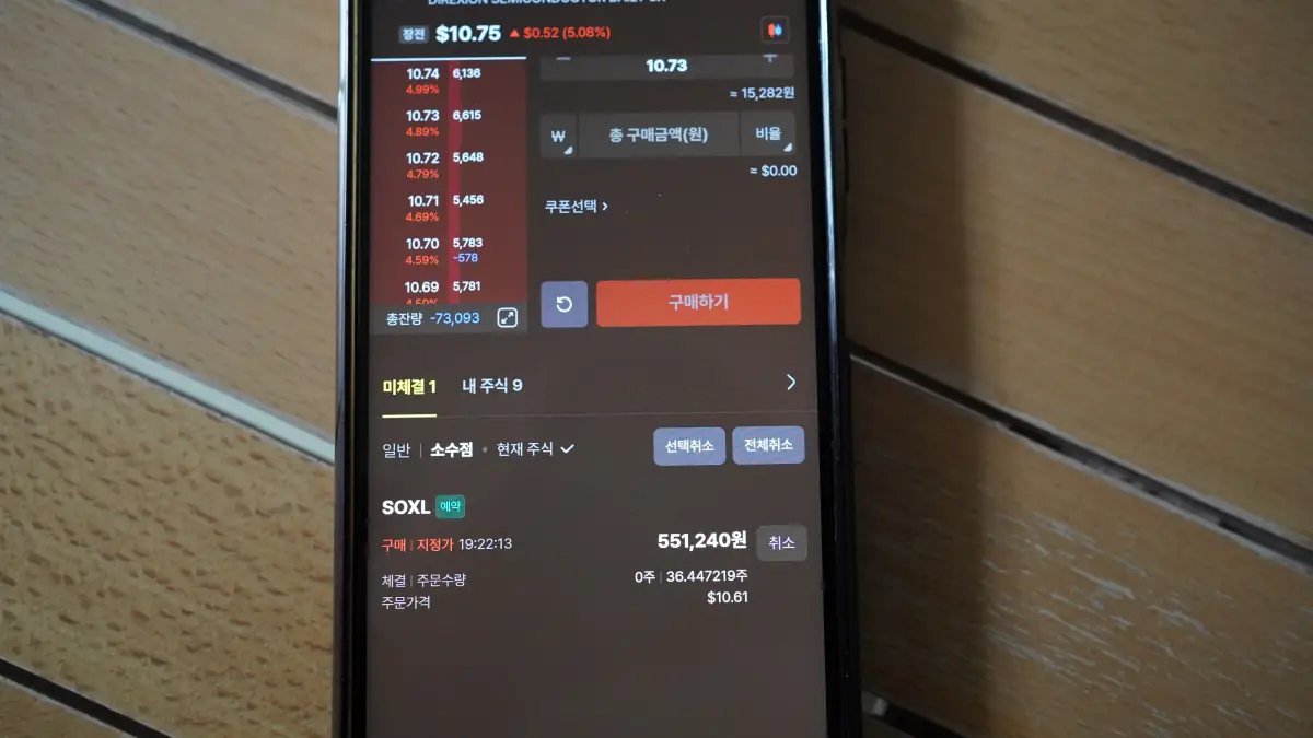 kb증권 미니 소수점 soxl etf 예약주문 취소하기